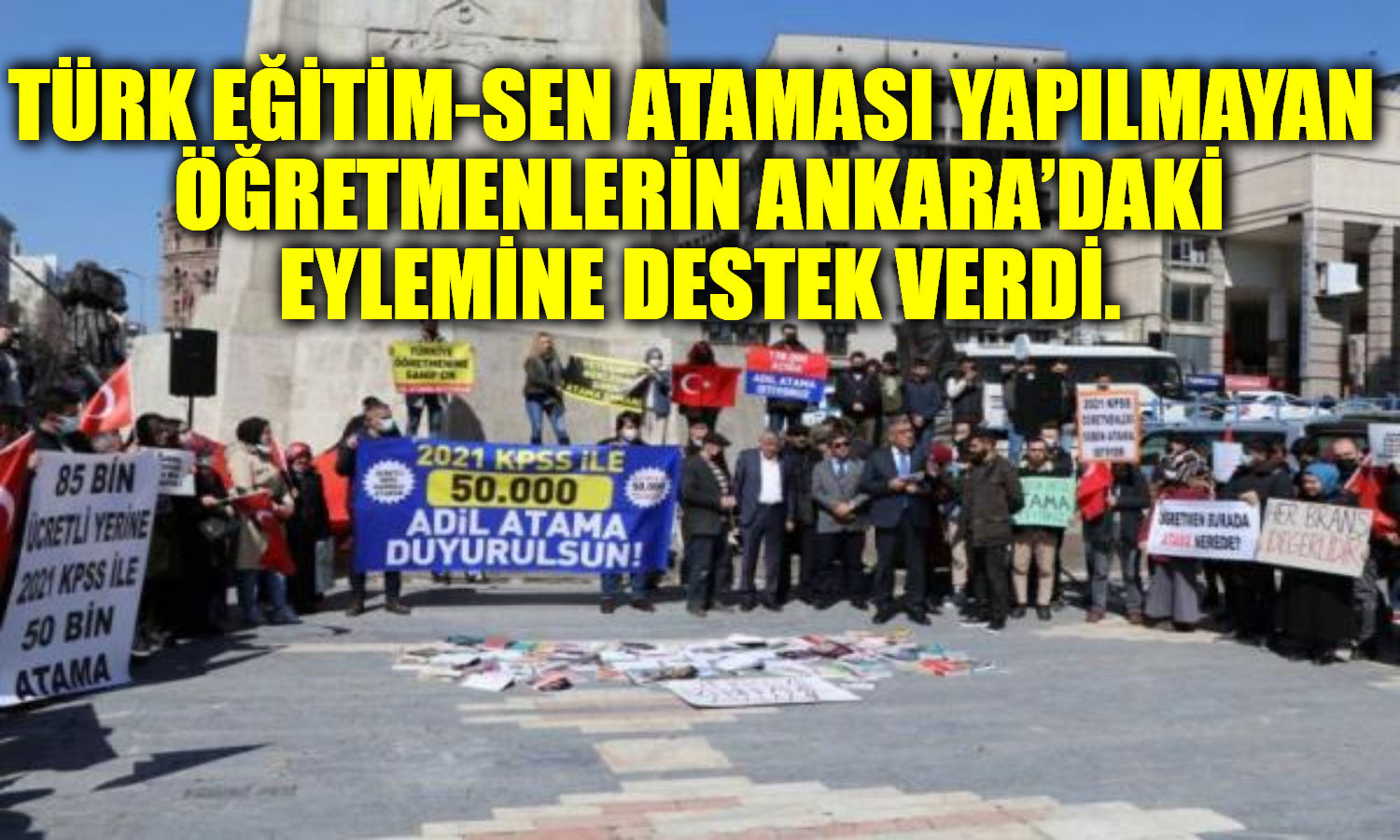 Türkiye’nin dört bir yanından eşleri, annesi, babası ve bebekleri ile eyleme katılan ataması yapılmayan öğretmenler, 2021 KPSS puanı ile 2022 yılı için 50 bin daha atama yapılmasını talep etti.